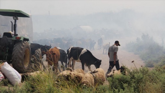 Kısa sürede büyüyen alevler, o sırada tarlada otlayan bine yakın küçük ve büyükbaş hayvanın etrafını sardı.