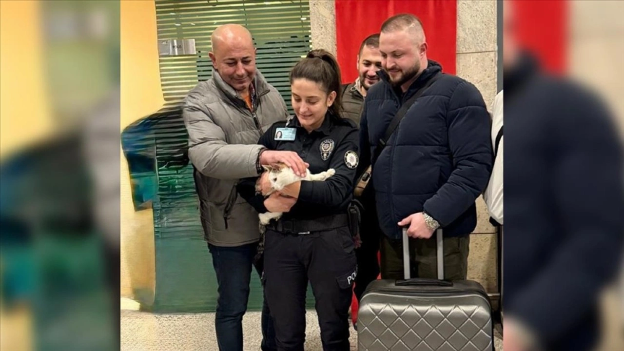 Ankara Esenboğa Havalimanı’nda araç içerisinde sahibi tarafından kilitli bırakılan kedi, polis ekipleri tarafından kurtarıldı