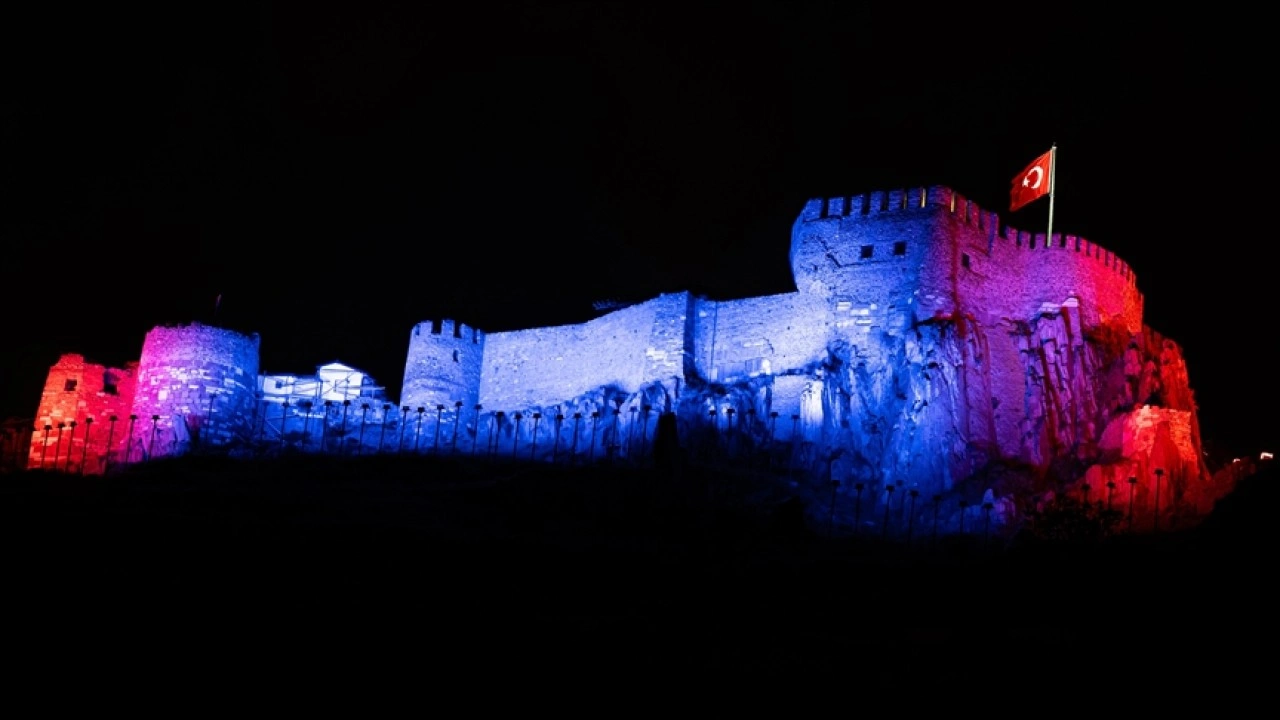 Bu kapsamda başkent Ankara'nın tarihi yapılarından Ankara Kalesi, yapılan özel çalışmayla jandarmanın renkleriyle ışıklandırıldı.
