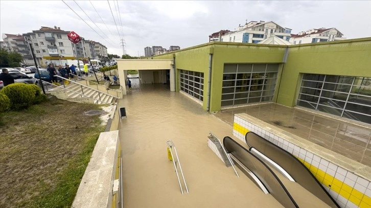 Metro girişlerini su basması nedeniyle de metro seferleri durduruldu.