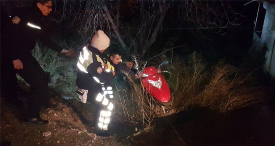 Kaza Sorgun Mahallesinde dün gece meydana geldi. Edinilen bilgiye göre, otogar istikametinden oteller bölgesi istikametine gitmekte olan Talat Coşkun’un (30) kullandığı plaka ve tescili bulunmayan motosiklet, Acısu Caddesinde kontrolden çıkarak akaryakıt istasyonu yanında bulunan dere yatağına uçtu.