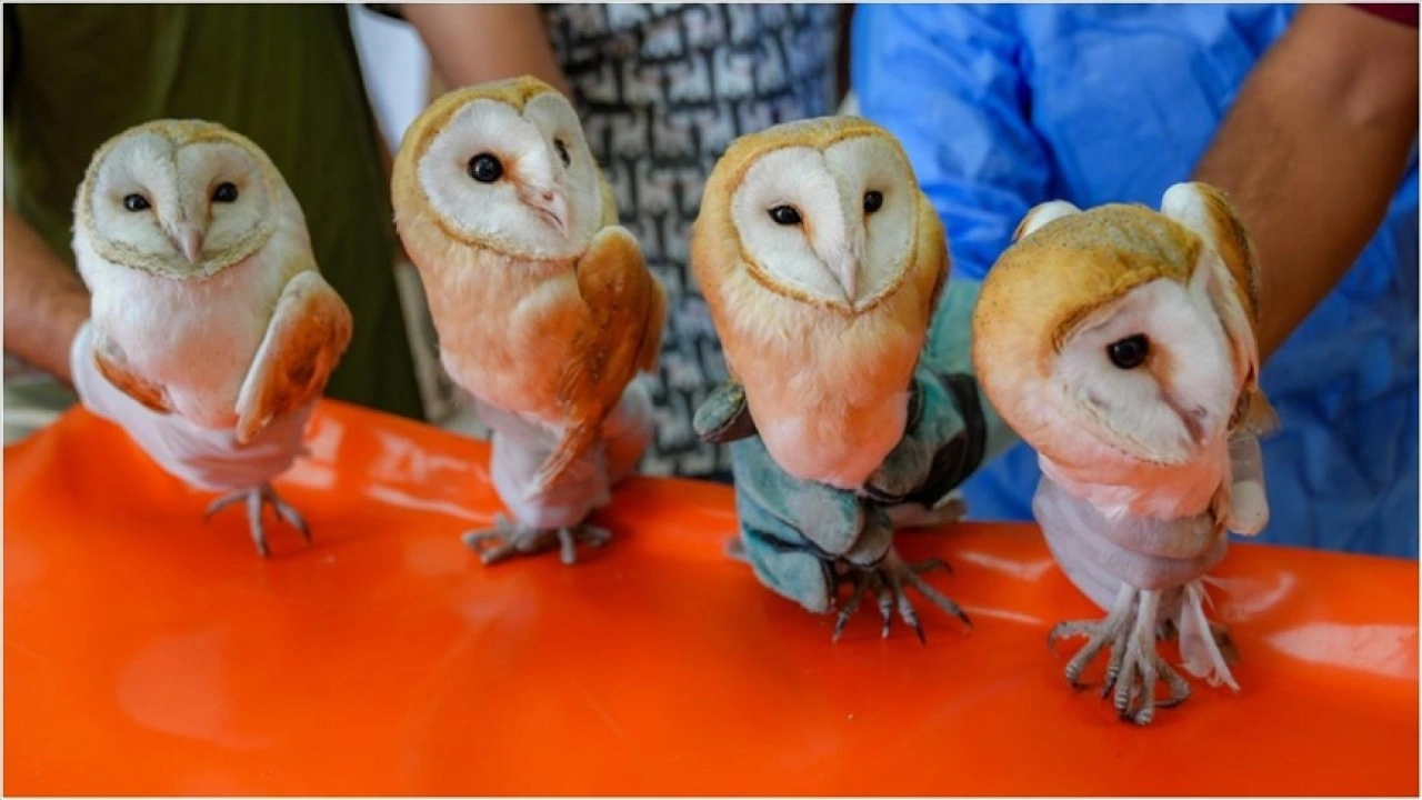 Diyarbakır'da anneleri ölmüş, açlık ve susuzluktan bitkin halde bulunan 4 yavru peçeli baykuş, Dicle Yaban Hayvanı Kurtarma ve Rehabilitasyon Merkezindeki özenli bakımın ardından doğal yaşam alanına bırakılacak.