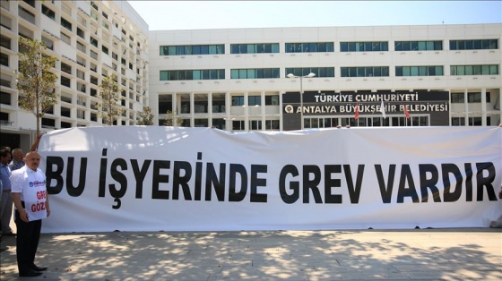 Hizmet-İş Sendikası Genel Başkan Vekili Hüseyin Öz, Antalya Büyükşehir Belediyesi yetkilileri ile görüştü. Ardından Öz ve beraberindekiler belediyenin hizmet binası bahçesine "Bu iş yerinde grev vardır" pankartı astı.