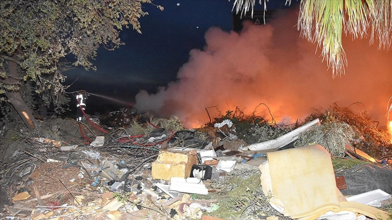 Antalya'da atıkların bulunduğu arazide çıkan yangına müdahale ediliyor