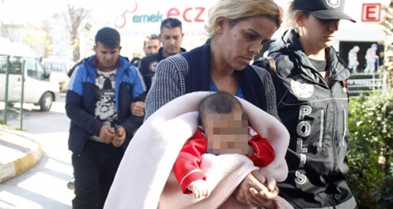 Ekipler, Muratpaşa ilçesi Yeşildere Mahallesi'nde iki adrese yaptıkları baskınlarda S.Ç. isimli kadının üzerinde 8 adet ecstasy hap, A.Y. ve S.P.nin ikametinde ise 6.9 gram esrar, 42 adet ecstasy hap ele geçirdi. S.Ç. isimli kadının kundağında bebeğiyle uyuşturucu madde sattığı ileri sürüldü.