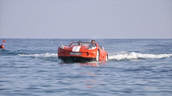 Antalya'da girişimci bir iş insanı tarafından üretilen otomobil görünümlü deniz aracı "Jetcar", görenlerin ilgisini çekiyor.