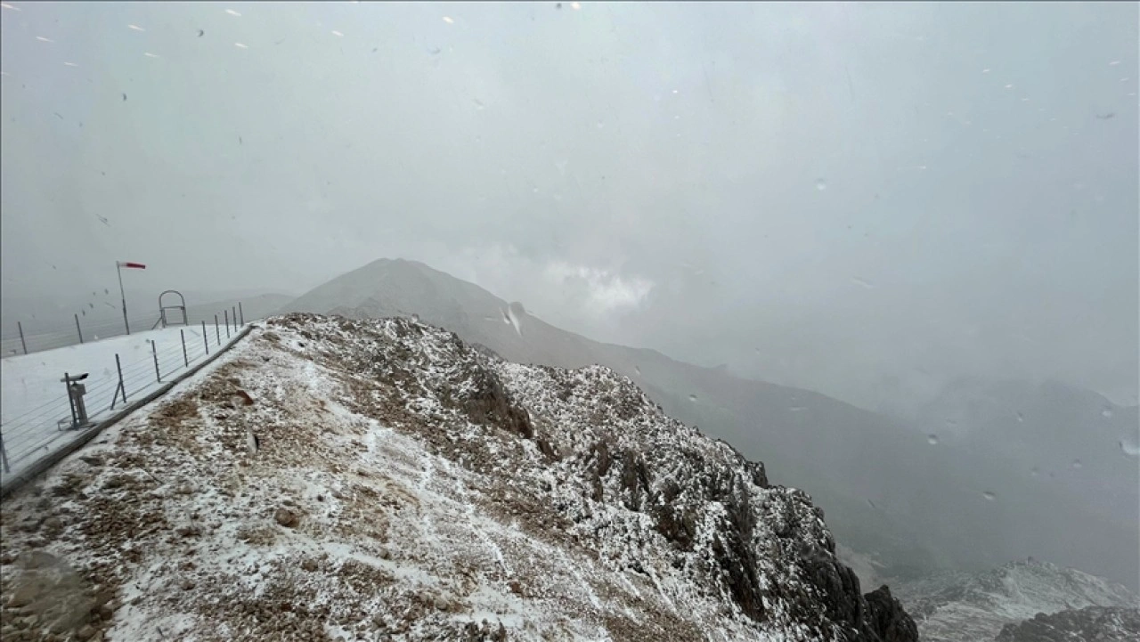 Yağış sebebiyle 2 bin 365 metre rakımlı Tahtalı Dağı'nın zirvesi beyaza büründü.