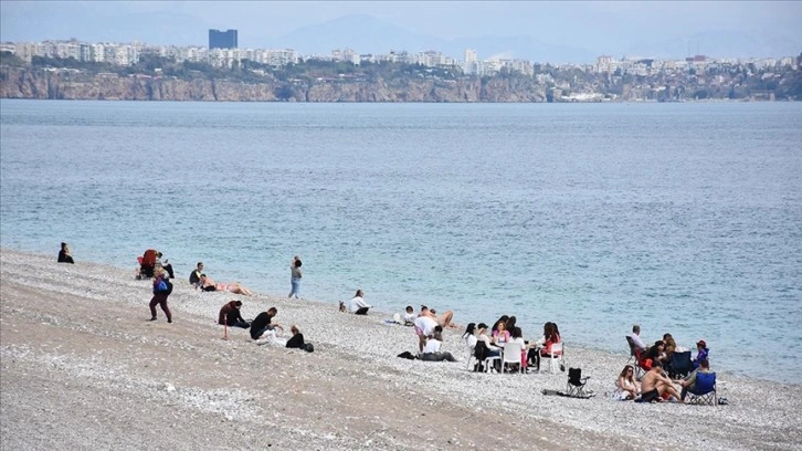 Hava sıcaklığının 32, deniz suyu sıcaklığının 27 derece olarak ölçüldüğü Antalya'da, güneşli havayı fırsat bilen turistler ve vatandaşlar, Konyaaltı ve Lara Sahili'nde güneşlendi.