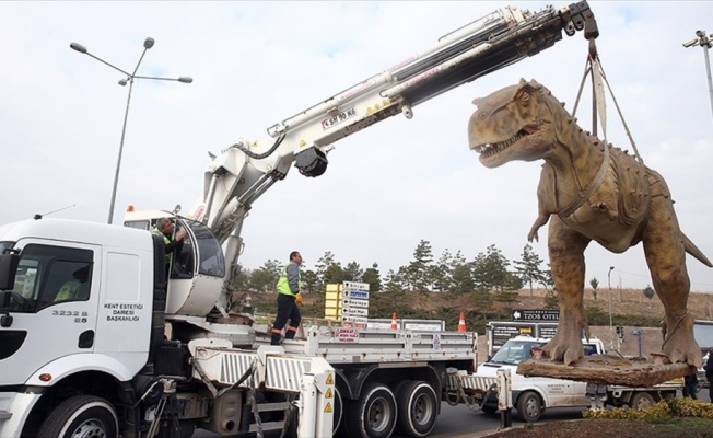 Ankapark'ın tanıtımı için AOÇ kavşağına yerleştirildiğinde vatandaşların dikkatini çeken dinozor maketi, Büyükşehir Belediyesi ekipleri tarafından bulunduğu yerden söküldü.