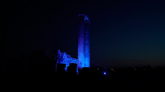 Aydın'ın Didim ilçesindeki Apollon Tapınağı otizme dikkati çekmek ve bu konuda farkındalığı artırmak amacıyla mavi ışıklandırıldı.