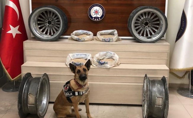 Van’ın Edremit ilçesinde Şila isimli narkotik madde arama köpeğinin de katıldığı aramada, aracın jantlarının içerisine zulalanmış 6 kilo 244 gram eroin ele geçirildi.
