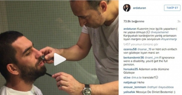 Barcelonalı yıldız oyuncu Arda Turan, tıraş olurken Göztepe tribünlerinin ünlü bestesi ’İsyan Marşı’nı söyledi. Videoyu sosyal medya hesabından paylaşan yıldız oyuncu, "Karşıyakalı kardeşlerim yanlış anlamasın, İsyan Marşı’nı çok seviyorum" notunu düştü.
