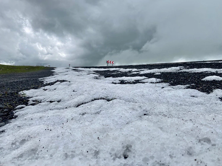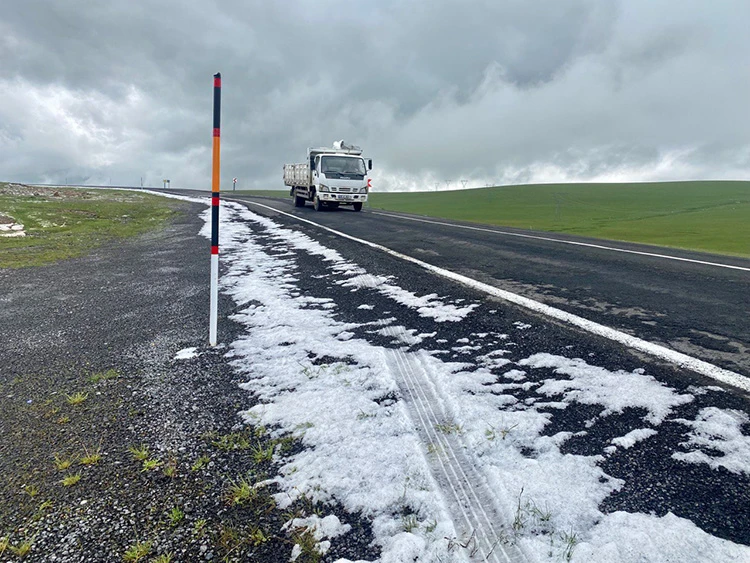 Ardahan-Artvin arası dolu nedeniyle beyaza büründü, yağış özellikle Sahara ve Bülbülan mevkilerinde yoğunluk gösterdi.