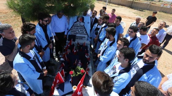 Ankara'da toplanan şehidin arkadaşları, Yalçın'ın Karaman'ın Kazımkarabekir ilçesindeki kabrine mezuniyet cübbeleri ve kepleriyle geldi.