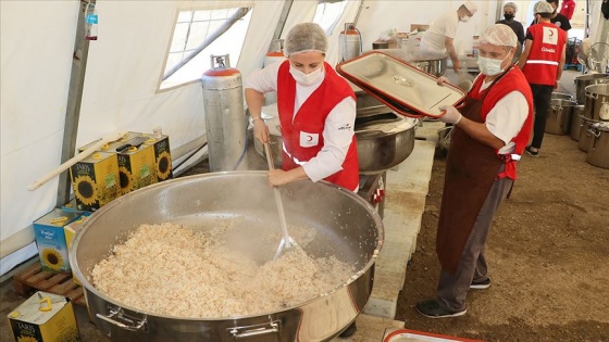 Dev kazanlarda her gün 20 bin porsiyon yemeğin çıkarıldığı ekibe dahil olan Baysal, depremzedelerin acılarını bir nebze de olsa hafifletmek için elinden gelen gayreti gösteriyor.