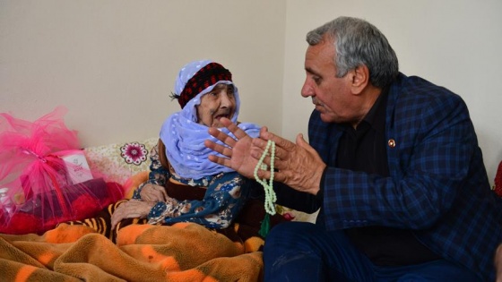 Özel sepette hediyeBelediye Başkan yardımcıları Aslan Çiftçi ve Halaf Kete'nin de aralarında bulunduğu heyet, Hürriyet Mahallesi'nde oturan 97 yaşındaki Bezar Zenciralmaz'ı ziyaret etti.