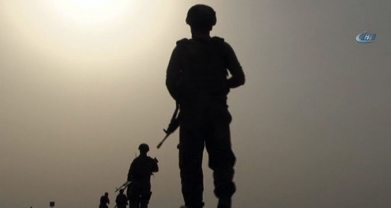 Asker, tatbikat alanı çevresinde devriye geziyor