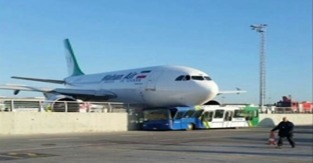 Atatürk Havalimanında İran Havayollarına ait Mahan yolcu uçağı, frenleri tutmayınca korkulukları kırarak bir otobüsün üzerine çıktı. Otobüste kimsenin olmaması olası bir faciayı önledi. Yolcular ise uçaktan tahliye ediliyor. (İHA)