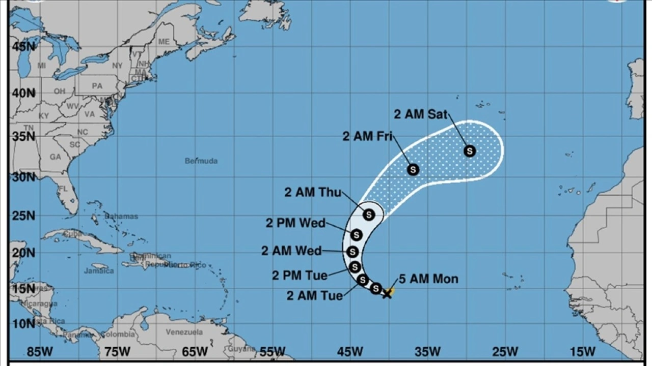 ABD Ulusal Kasırga Merkezinden yapılan açıklamada, tropik fırtınanın, Atlas Okyanusu'nda Cabo Verde'nin yaklaşık 1762 kilometre batısında bulunduğu ve rüzgar hızının saatte 72 kilometreye çıktığı belirtildi.