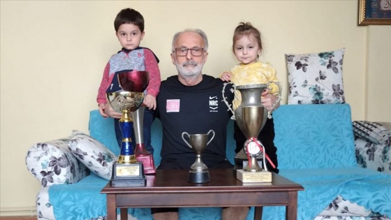 Kocaeli'nin İzmit ilçesinde yaşayan ve yeni tip koronavirüs (Kovid-19) tedbirleri kapsamında, 55 yıl koştuğu pistlerden uzak kalan atletizm sevdalısı Hasan Antika, zinde kalmak için evinde torunlarıyla spor yapıyor.