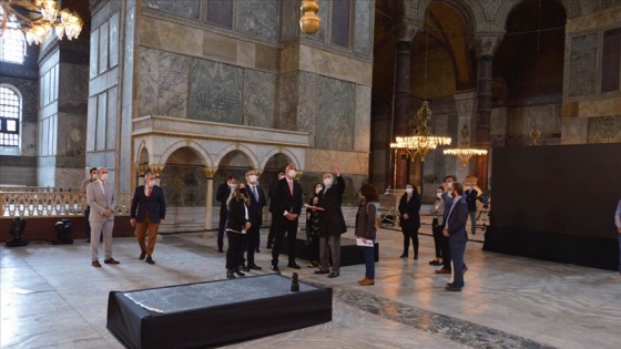 Bakanlıktan yapılan açıklamaya göre, Mehmet Nuri Ersoy, Fatih Sultan Mehmet Han'ın yeni bir çağın kapılarını araladığı İstanbul'un fethinden sonra ilk cuma namazını kıldığı Ayasofya'da, bakanlığınca sürdürülen çalışmaları inceledi.
