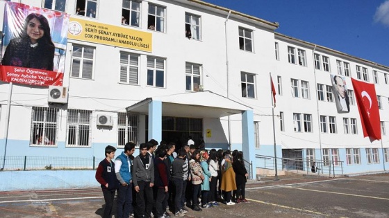 Topaloğlu, şehit meslektaşı Şenay Aybüke Yalçın'ı Öğretmenler Günü'nde anmak için Batman'ın Kozluk ilçesindeki Şehit Şenay Aybüke Yalçın Çok Programlı Lisesi'ne geldi.