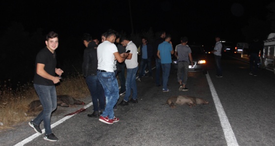 Aydın’ın Köşk ilçesinde aniden yola çıkan domuz sürüsü trafik kazasına neden oldu. Kaza sonrası araçlarda maddi hasar meydana gelirken iki domuz da telef oldu.