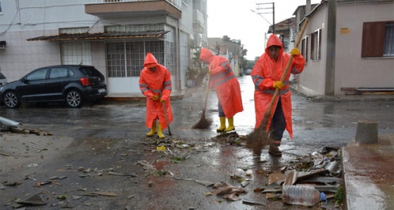 Aydın’ın Söke ilçesinde aşırı yağışla birlikte oluşan hortum büyük hasara yol açtı.