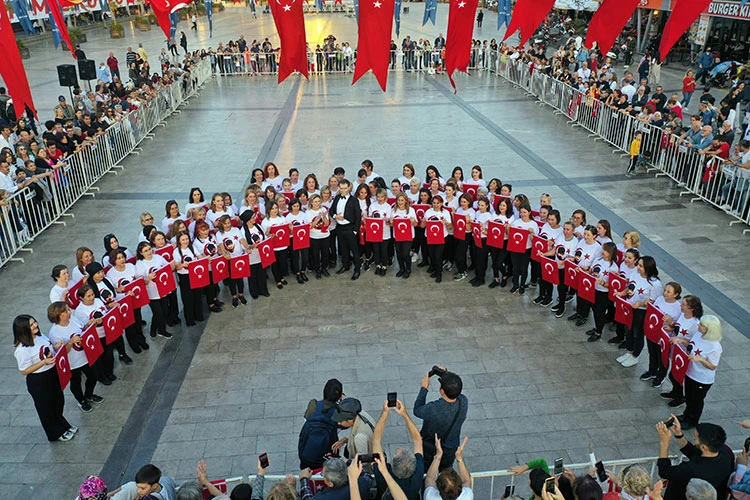 Kadın Hakları Koruma Derneği öncülüğünde yapılan organizasyon kapsamında Cumhuriyet'in 99. yıl dönümü dolayısıyla Atatürk ve ay yıldız tişörtü giyen 99 kadın, Atatürk Kent Meydanı'nda toplandı.