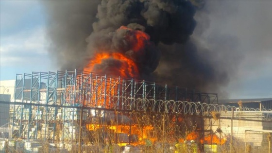 Nedeni araştırılan yangının, fabrikaya sıçramaması için müdahaleler sürüyor.