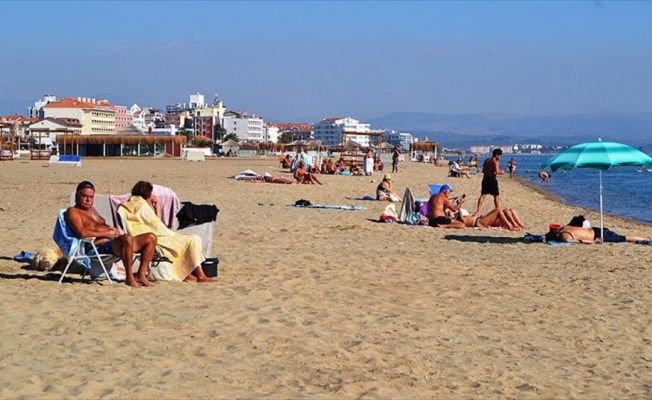 BALIKESİR (AA) - Balıkesir'in Ayvalık ilçesinde hava sıcaklığının güneş altında 30 dereceye çıkmasını fırsat bilen vatandaşlar, ekim ayının son günlerinde hafta sonu denize girmenin keyfini yaşadı.