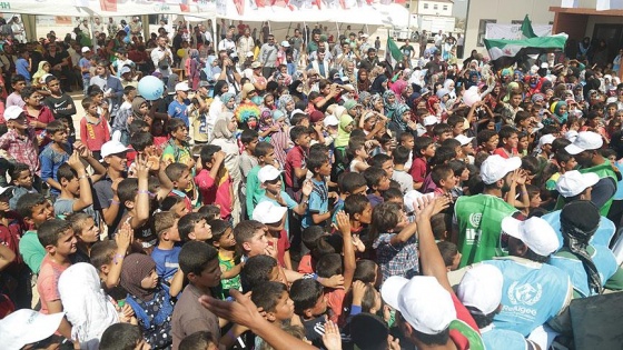 İstanbul merkezli Uluslararası Mülteci Hakları Derneğinin (UMHD) Azez'deki Uluslararası Şam Üniversitesi kampüsünde düzenlediği şenliğe yaklaşık 500 çocuk katıldı.