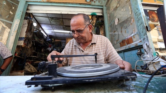 AA muhabirine konuşan Ebu Talip, "Bağdat'ta gramafon tamiri yapan tek kişiyim. Ben de bu mesleği şu an hayatta olmayan ustalarımdan öğrendim." dedi.