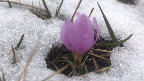 Türkiye'de kış mevsiminin en sert geçtiği yerlerden olan Kars'ta mart ayının gelmesi ve hava sıcaklığının artmasıyla kardelenler de karlar arasından kendini göstermeye başladı.