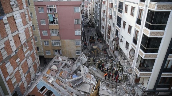 Bahçelievler'de çöken apartmanın çevresinde zarar gören ve tahliye edilen binalarda hasar tespit çalışması yapıldı.