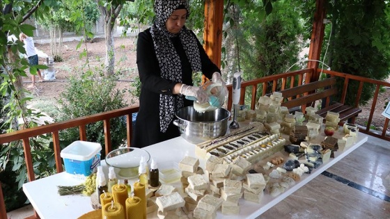 Merkeze bağlı Yedigöze köyündeki bahçelerinde yetiştirdiği sebze, meyve ve aromatik bitkileri kullanarak 4 yıl önce doğal sabun üretmeye başlayan Tuba Bahçeci, bunları satarak aile bütçesine katkı sağlıyor.