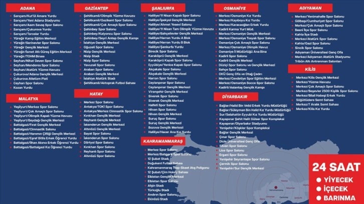 Gençlik ve Spor Bakanlığı’nın tesisleri, personelleri, bütün imkanları aziz milletimizin emrindedir!Deprem bölgesinde 7/24 sıcak yemek, içecek ve barınma hizmeti verdiğimiz güncel tesis listesi: pic.twitter.com/94xn5v55wM— Dr. Mehmet Kasapoğlu (@kasapoglu) February 9, 2023