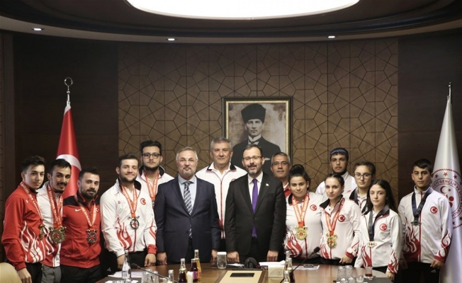Gençlik ve Spor Bakanı Dr. Mehmet Muharrem Kasapoğlu, Gürcistan’da düzenlenen Büyükler Avrupa Halter Şampiyonası ile ABD’de yapılan Yıldızlar Dünya Halter Şampiyonası’nda madalya kazanan sporcuları makamında kabul etti.