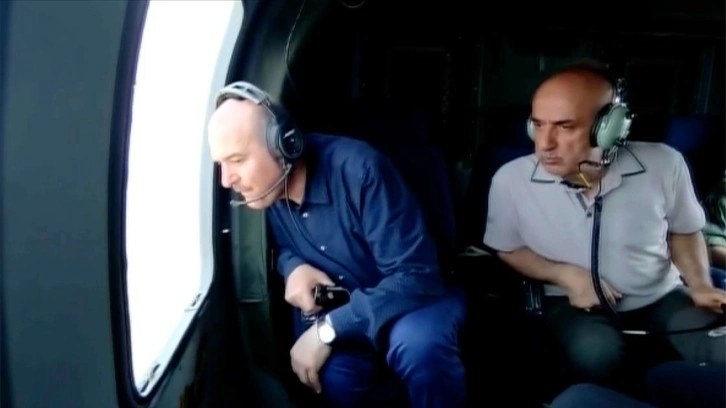 Kirişci ve Soylu, Muğla'nın Marmaris ilçesinde yangının sürdüğü ormanlık alanda helikopterle incelemede bulundu.