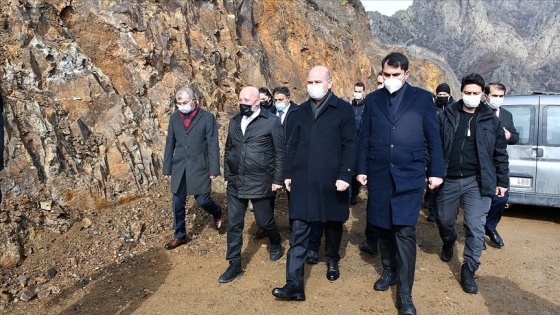 Çevre ve Şehircilik Bakanı Murat Kurum, İçişleri Bakanı Süleyman Soylu ile 17 Mart'ta yangında çok sayıda evin zarar gördüğü Artvin'in Yusufeli ilçesine bağlı Dereiçi köyünde incelemelerde bulundu.