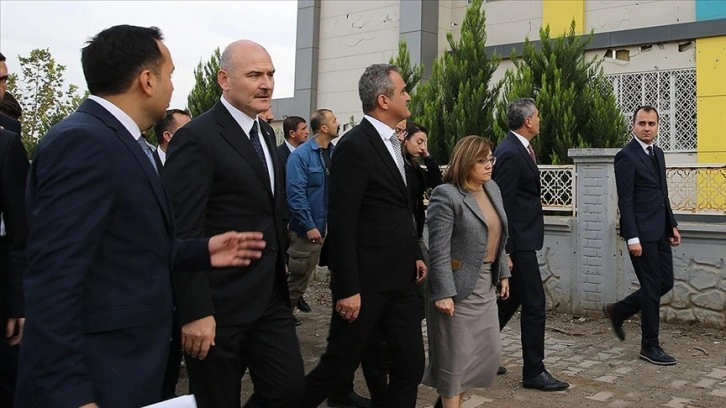 Soylu, terör örgütü YPG/PKK'nın saldırı gerçekleştirdiği Gaziantep'in Karkamış ilçesinde Milli Eğitim Bakanı Mahmut Özer ile incelemelerde bulundu.