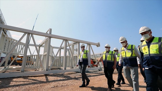 Bakan Varank, banttan indiğinde Avrupa'nın doğuştan elektrikli ilk ve tek SUV modeli olacak TOGG'un Gemlik'teki tesislerinin inşaatında incelemelerde bulundu.