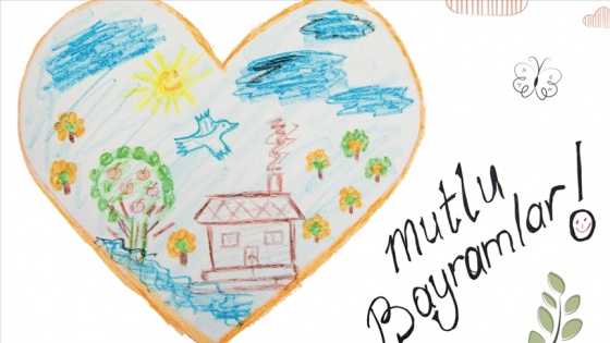 "Mutlu Bayramlar" ifadesiyle kalp içinde ev, ağaç ve kuşlardan oluşan kompozisyonun yer aldığı kartlarla çocukların bayramını kutlayan Yanık, "Bayramlarda çocuklarımız bize resim çizip bayramımızı kutlardı.