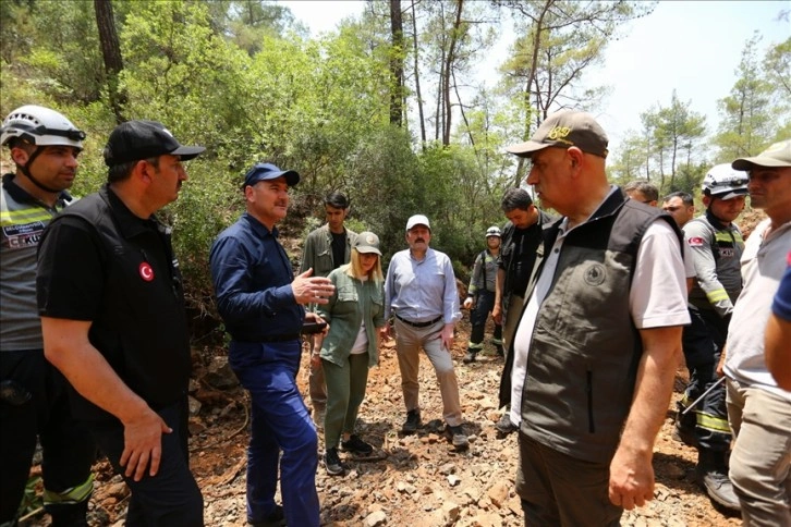 Tarım ve Orman Bakanı Vahit Kirişci ile İçişleri Bakanı Süleyman Soylu, orman yangının çıktığı ve devam ettiği noktalarda incelemelerde bulundu.