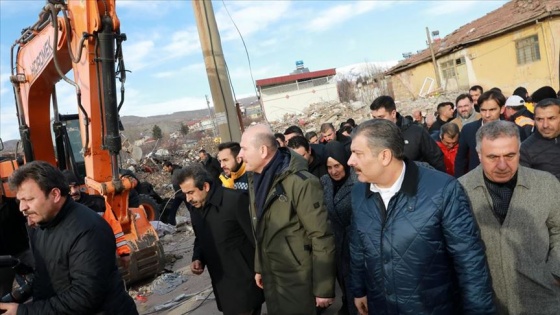 İçişleri Bakanı Soylu ve Sağlık Bakanı Koca, Elazığ'da meydana gelen 6,8 büyüklüğündeki depremden etkilenen Maden ilçesinin Gezin köyünde incelemelerde bulundu.
