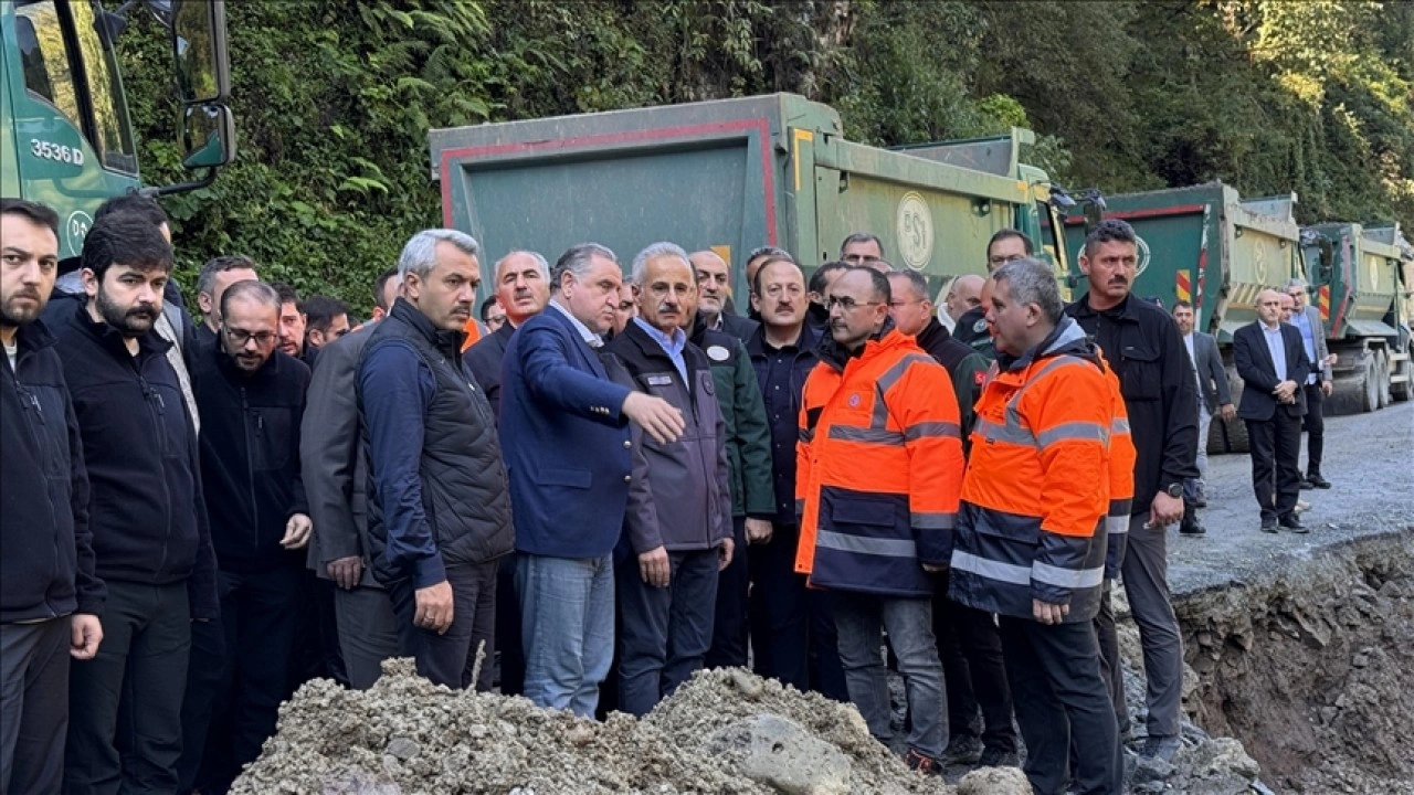 Kentte etkili olan sağanağın ardından bölgeye gelen Bakanlar Uraloğlu ile Bak, önceki gün ulaşıma kapanan Çamlıhemşin ilçesindeki Ayder Yaylası yoluna giderek yürütülen çalışmalar hakkında bilgi aldı.