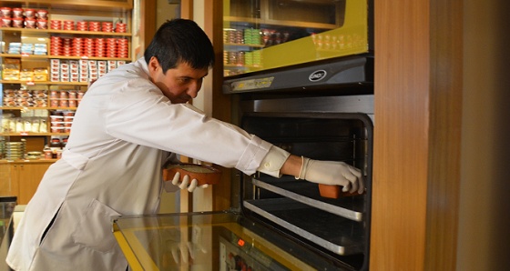 Güveçte Helva’yı evlerinde pişirecekler için tarif veren Mehmet Göksu, “250 gramlık ambalajlarımızı 200 derecelik sıcaklıktaki fırında yaklaşık 10 dakika boyunca pişiriyoruz. Mikrodalga fırında da uygulanabilir. 10 dakikanın sonunda helvamız hazır hale geliyor” dedi.