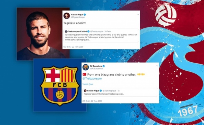 TRABZON (AA) - İspanyol ekibi Barcelona'nın savunma oyuncusu Gerard Pique, kendisine forma gönderme sözü veren Trabzonspor'a sosyal medya hesabından Türkçe paylaşımda bulunarak teşekkür etti.