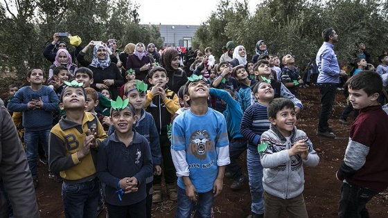 Çocukların farklı bir gün geçirmesi için 22 dönüm zeytin bahçesinde düzenlenen etkinlikte 340 Suriyeli yetim ağaçlardan zeytin topladı. Büyük bir merakla dallara uzanan çocuklar, daha sonra üzerilerinde barış mesajlarının olduğu balonları gökyüzüne bıraktı.