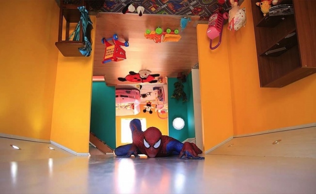 "Antalyalı Örümcek Adam" olarak bilinen Burak Soylu da kostümünü giyerek ziyaret ettiği evde, turistlerle fotoğraf çektirdi.